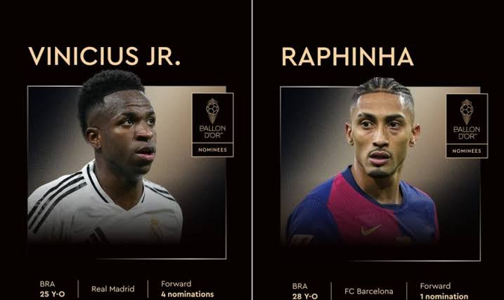 Raphinha, do Barcelona, e Vini Jr., do Real Madrid estão entre os indicados à Bola de Ouro 2025, que premia o melhor da temporada 2024/25 na Europa. O vencedor será anunciado em cerimônia no dia 22 de setembro, no Théâtre du Châtelet, em Paris.