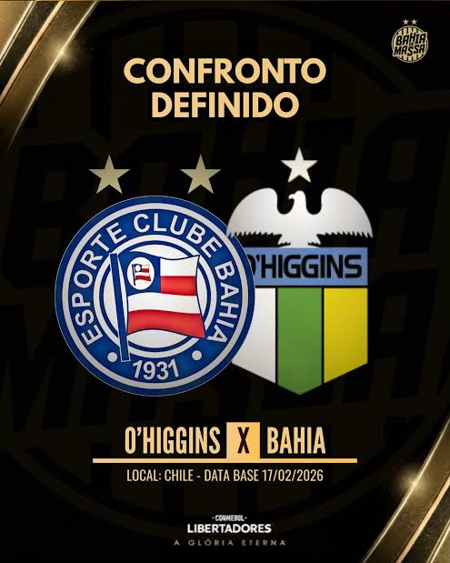 O Bahia já conhece o caminho que terá pela frente na Pré-Libertadores de 2026. Em sorteio realizado pela Conmebol, o Esquadrão teve o O’Higgins, do Chile, definido como seu adversário na segunda fase da competição, etapa que antecede a fase de grupos do torneio continental.