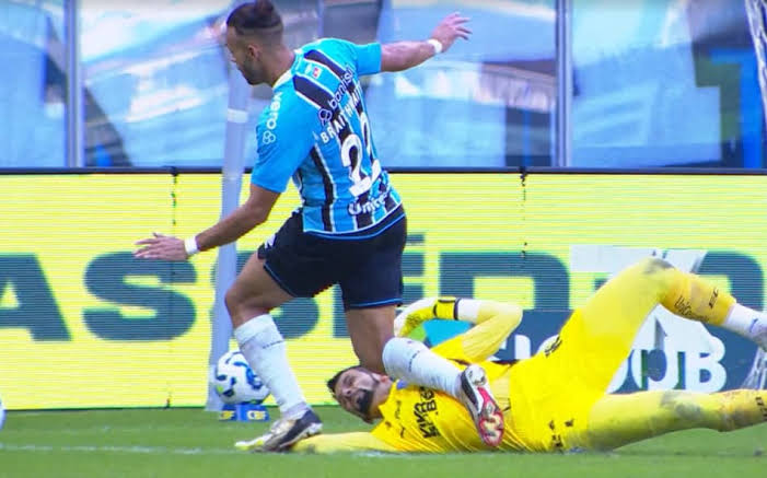 O pênalti acabou sendo confirmado e convertido por Braithwaite aos 15 minutos, selando a vitória do Grêmio.