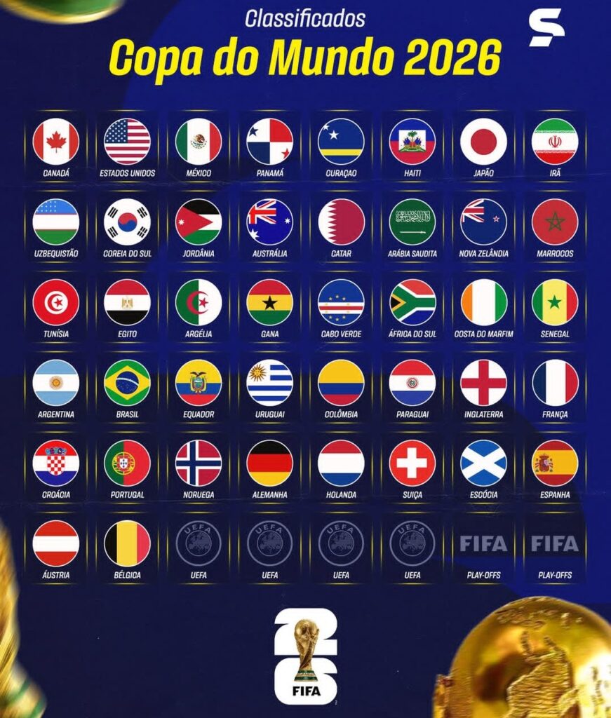 Com direito a muitas surpresas, conhecemos nesta última terça-feira (18) as últimas seleções classificadas diretamente para a Copa do Mundo 2026. Ainda restam 6 das 48 vagas, que sairão das repescagens, em março do ano que vem.